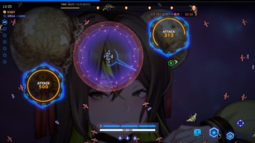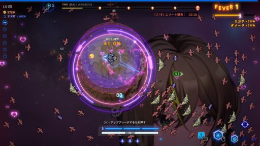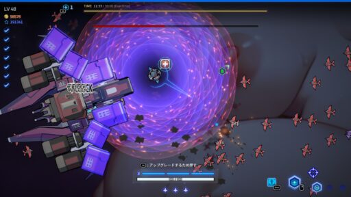敵を撃破すると、経験値をドロップします。経験値を集めて自機・武器を強化していきましょう。